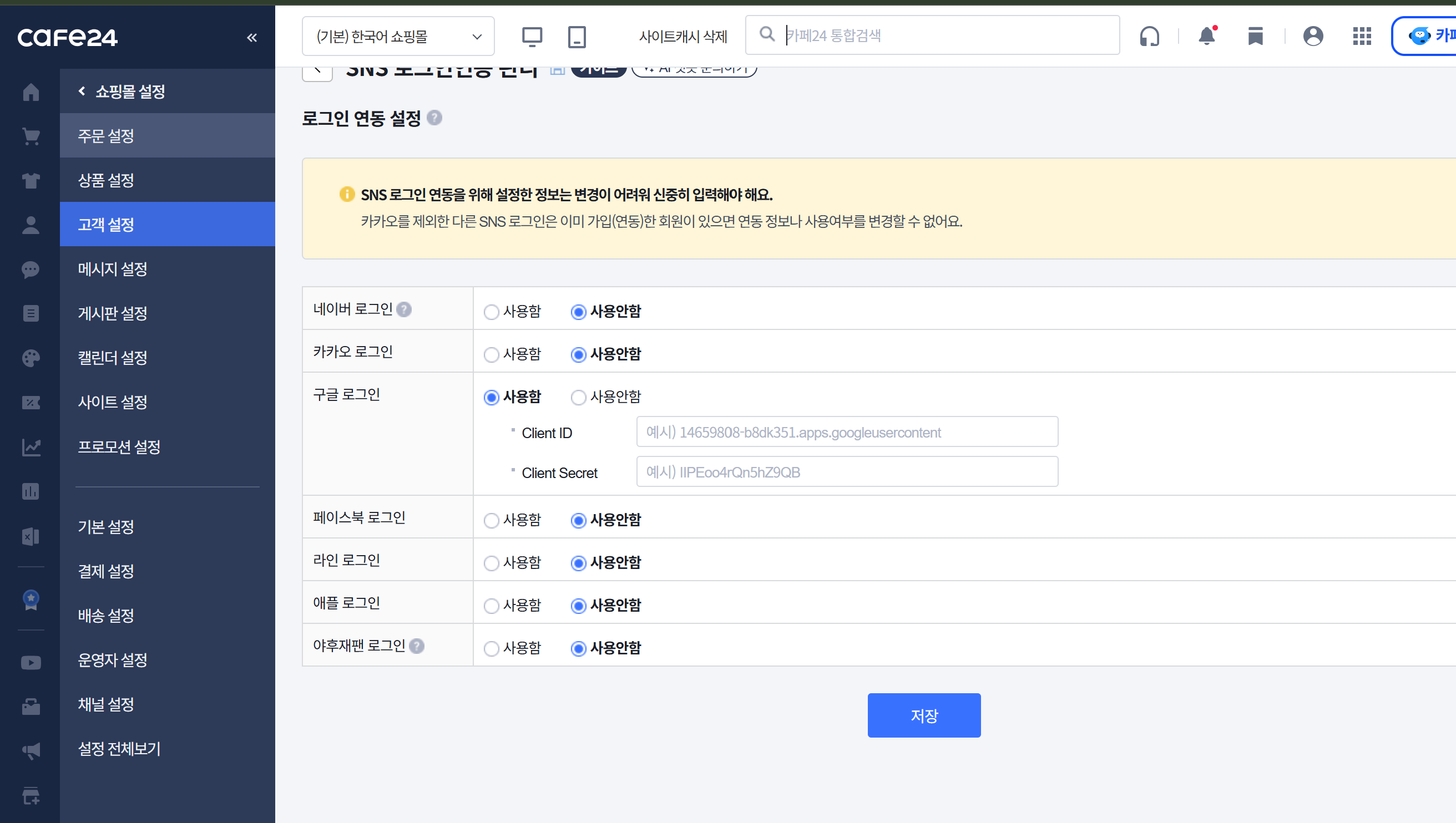 카페24에서는 SNS 로그인 기능을 손쉽게 설정할 수 있습니다.