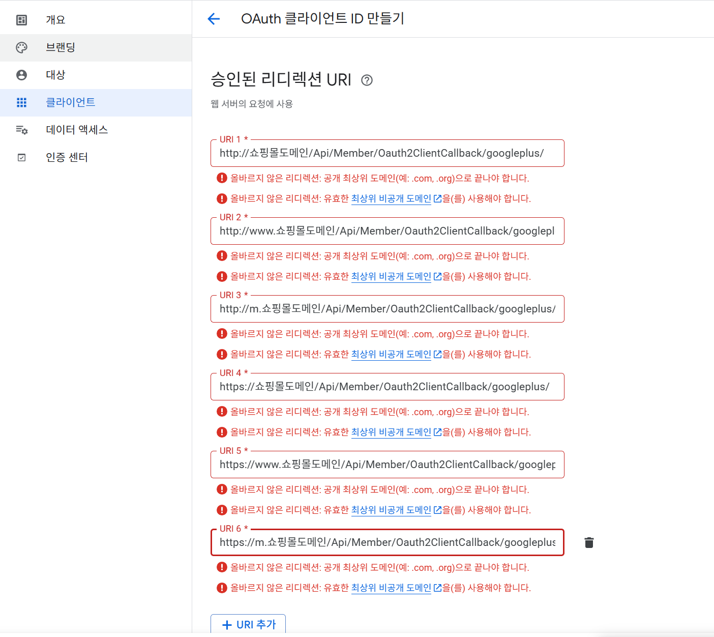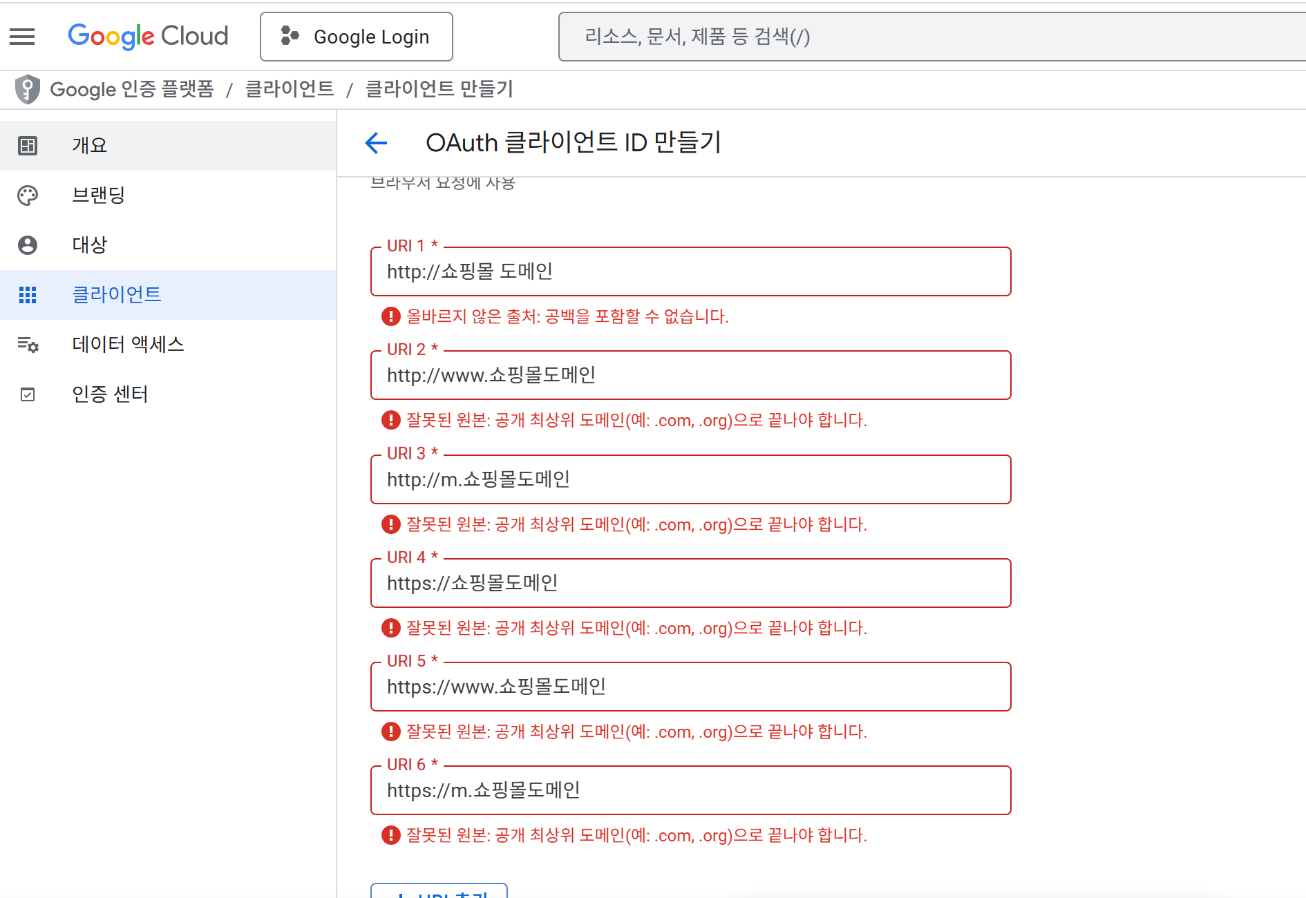 카페24 SNS 구글 로그인 설정 프로젝트 이름 생성
